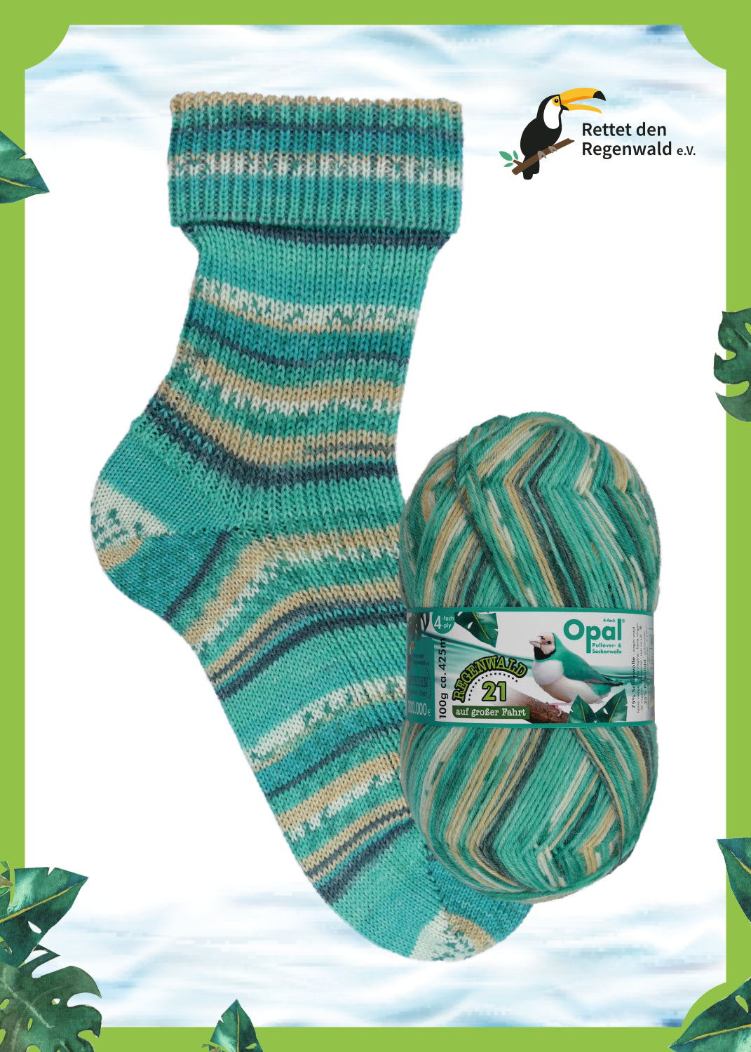 Kā vienmēr, Opal Rainforest sērija apvieno košas krāsas ar augstas kvalitātes četrslāņu zeķu dziju – izturīgu, mīkstu un brīnišķīgu darbam. Un pats labākais: daļa no ieņēmumiem tiek ziedota lietus mežu aizsardzība !